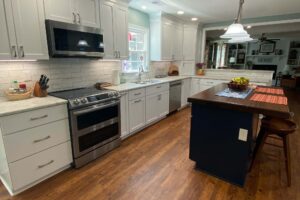 Our team redesigned the layout to create a more open and practical cooking space. The project included installing custom cabinetry, new countertops, upgraded lighting, and modern appliances. We also refreshed the flooring and backsplash to give the kitchen a clean, contemporary look.